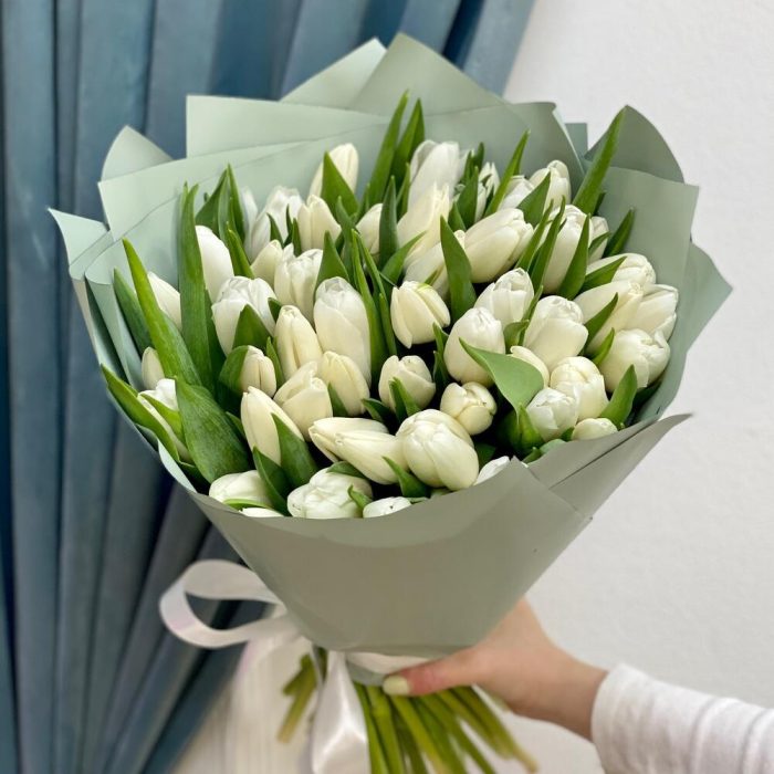 Букет белых тюльпанов 51 шт – «Рай на двоих»