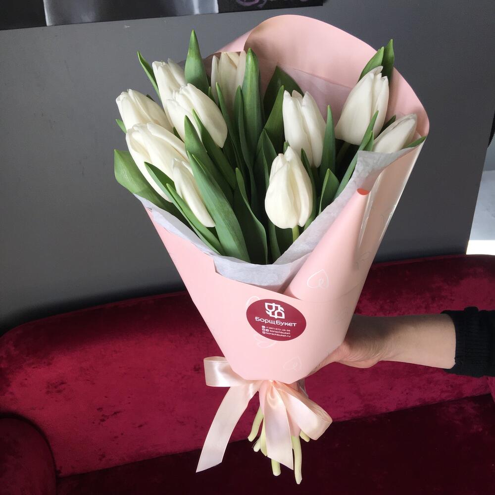 Букет из 11 белых гладких тюльпанов