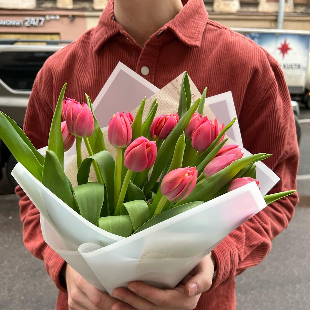 Тюльпан розовый – 15 шт.упаовкка дизайнерская – 2 шт.