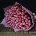 тюльпан пионовидный коламбус – 101 шт.Пленка матовая – 5 шт.Лента атласная – 1 шт.